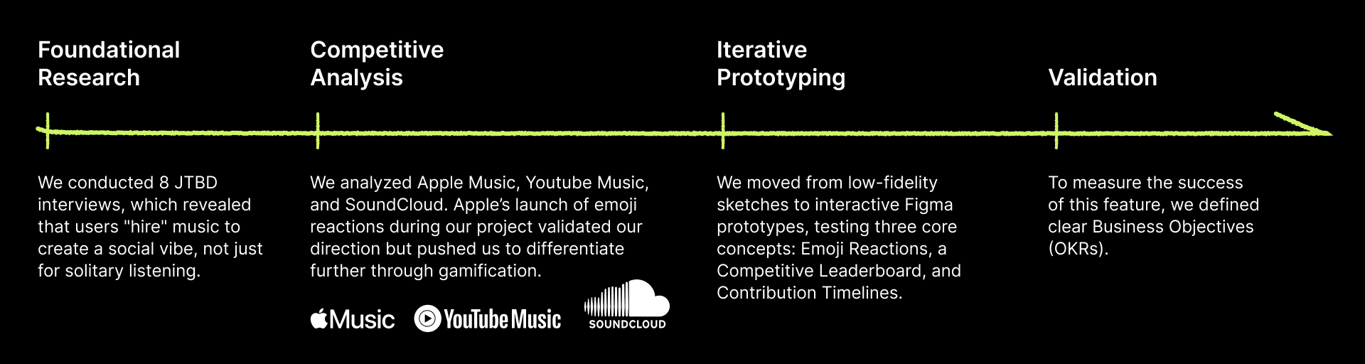 This project highlighted the delicate balance between "Gamification" and "Social Connection." I learned that features don't exist in a vacuum; they must match the emotional context of the user. By pivoting from a "competitive" frame to a "connective" one, we created a feature that feels authentic to the music listening experience. Future iterations would focus on adding direct commenting to further deepen the in-app conversation.