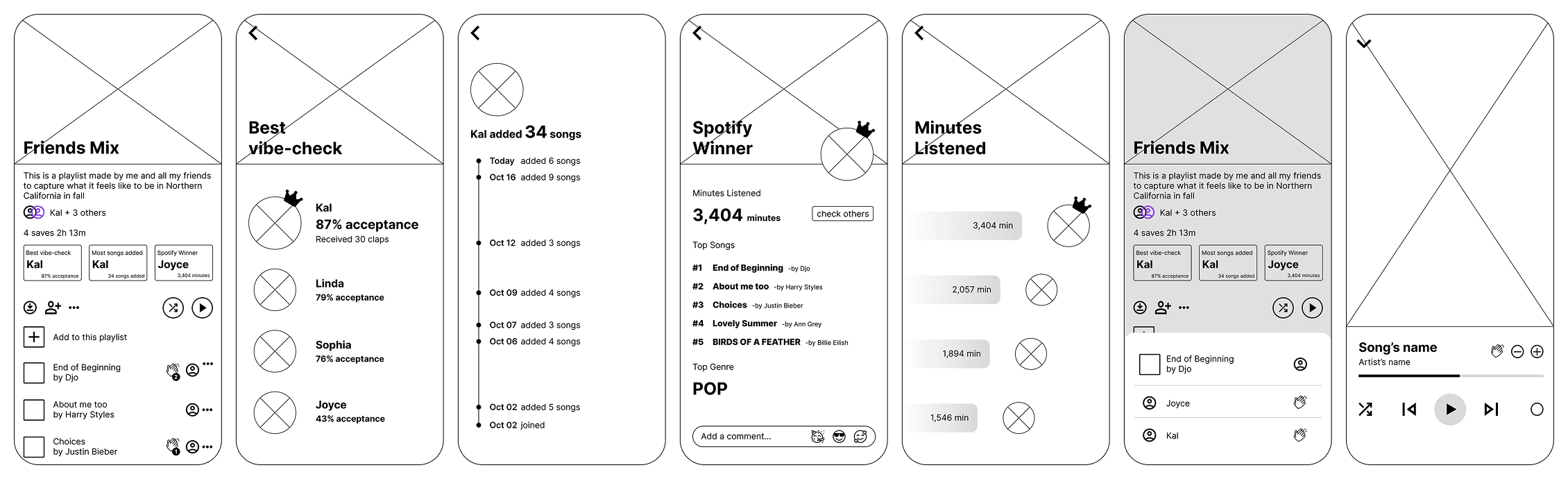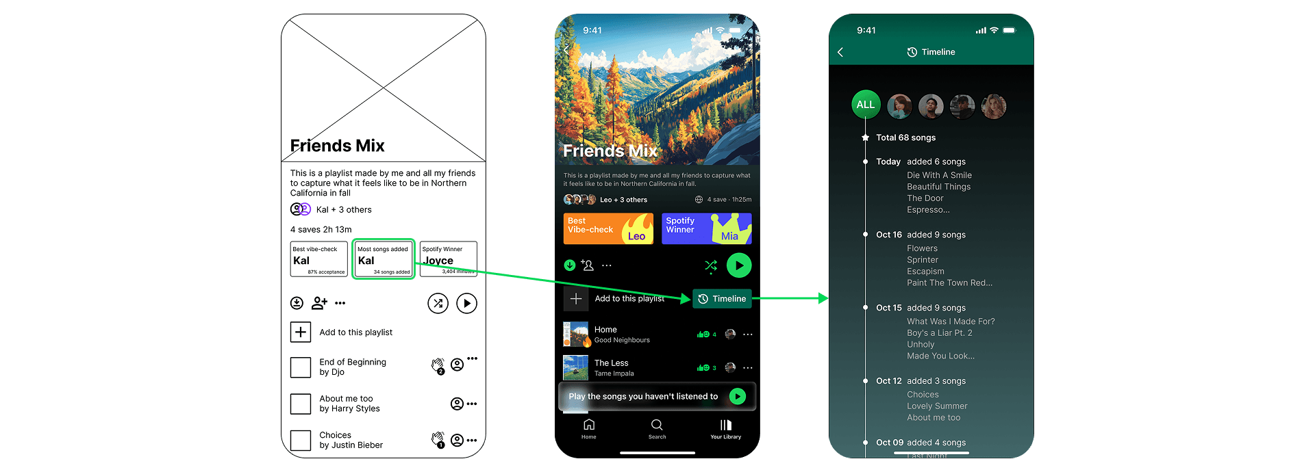A dedicated timeline view showing exactly who added what and when, turning the playlist into a shared history of the group's friendship.