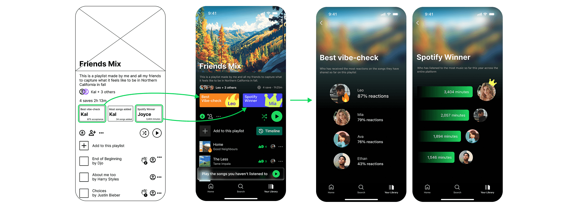 Spotify dominates the streaming market, but its social features lag behind its algorithmic ones. Our research revealed a critical gap: the most meaningful music discovery happens between friends, yet Spotify's current shared playlists are static and passive. This project aimed to bring that vibrant, off-platform social energy back into the app by transforming playlists into active, gamified communities.