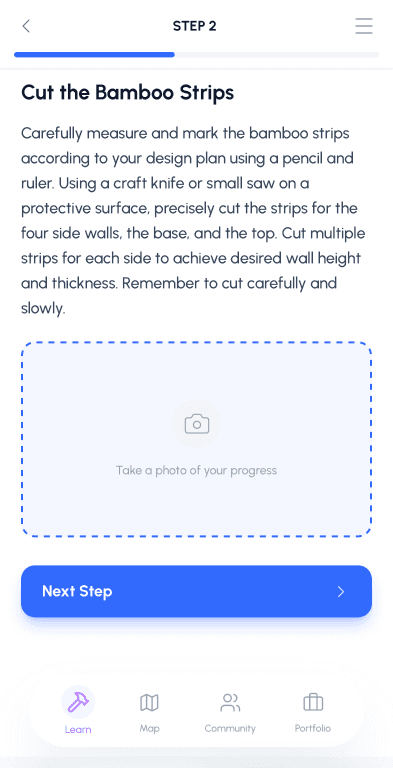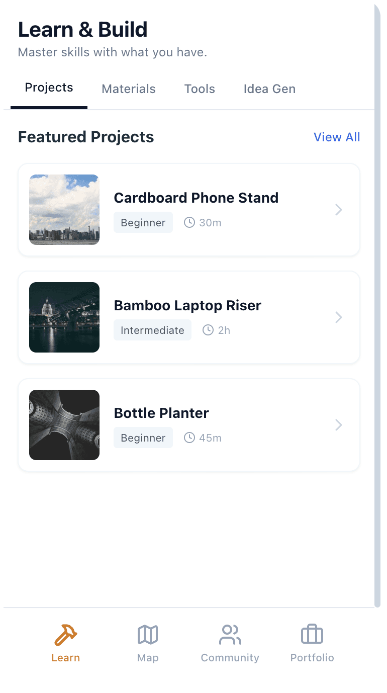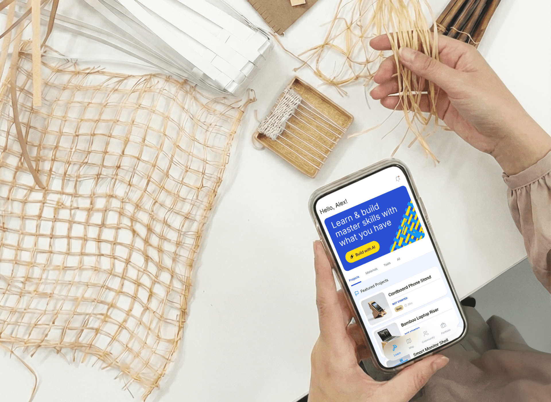 I designed a feature where users input a text prompt or sketch. Using a prototyped LLM backend, the app analyzes the request against the user's available materials (e.g., "I have rice straw and tape") to generate tailored, step-by-step fabrication guides.