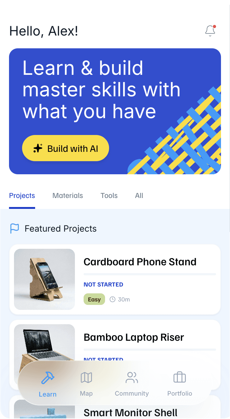 I led the end-to-end product journey, moving from deep qualitative research to high-fidelity prototyping. My core contribution was identifying the critical pivot from a hardware solution to a software ecosystem. I also led the technical implementation, utilizing Google AI Studio to engineer a functional LLM prototype that could generate context-aware building instructions, allowing us to test the core value proposition with real users.
