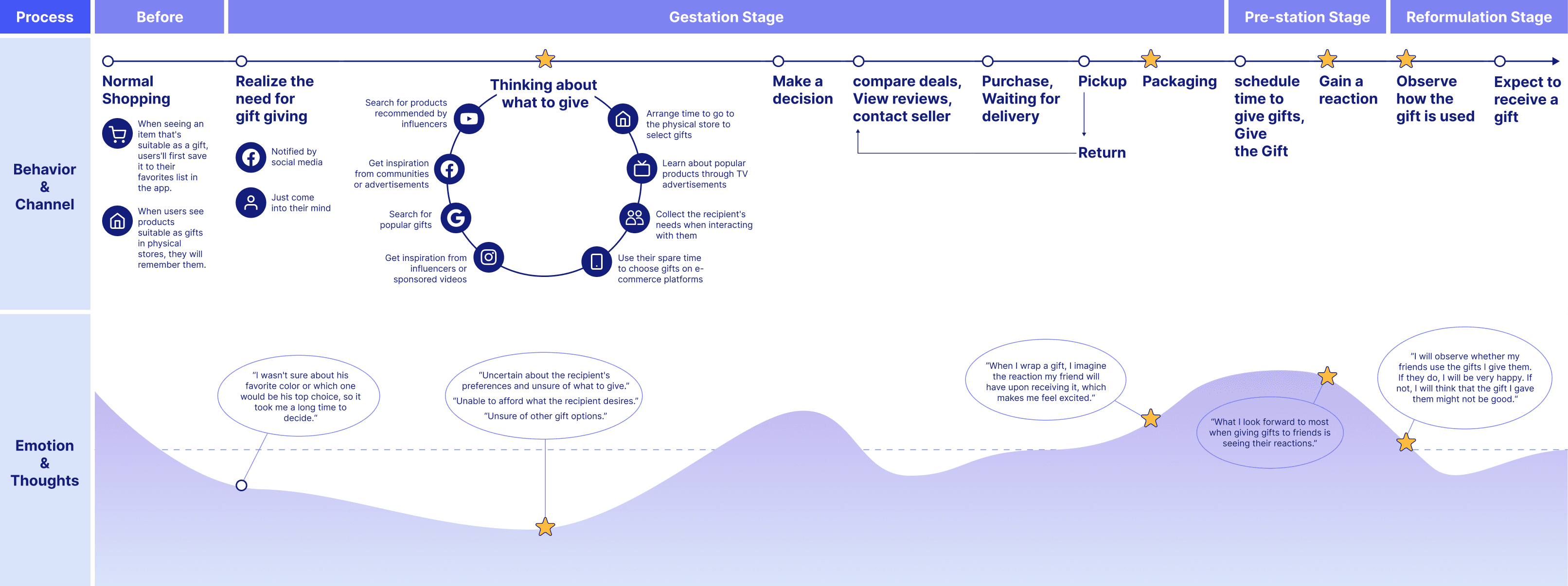 The core problem was uncertainty. Givers worry about the recipient's reaction and struggle to find "appropriate" gifts amidst generic marketing promotions. They didn't need more products; they needed confidence in their decision-making.