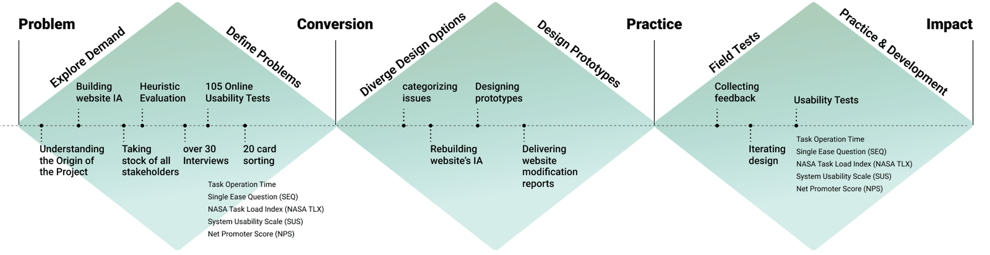 The website had to serve a wide range of users with different tasks, making the organization of its structure a fundamental but crucial challenge. To gather a comprehensive understanding of the website's required features and pain points, we conducted in-depth interviews with each user role to explore their primary tasks. We asked them to demonstrate their usual workflows, which helped us break down their tasks and prioritize them based on frequency and importance. We then identified pain points and unintuitive labels across the site’s functions. With this information, we reorganized the information architecture to help users navigate the website more efficiently and complete their tasks more effectively.